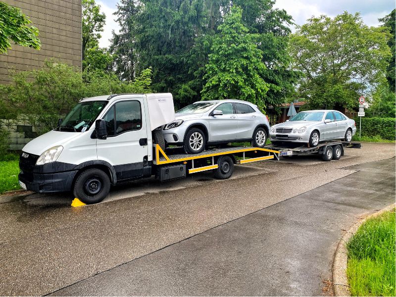 Toate autoturismele sau autoutilitarele transportate sunt asigurate cu asigurare CMR în valuare de 1.000.000 EURO